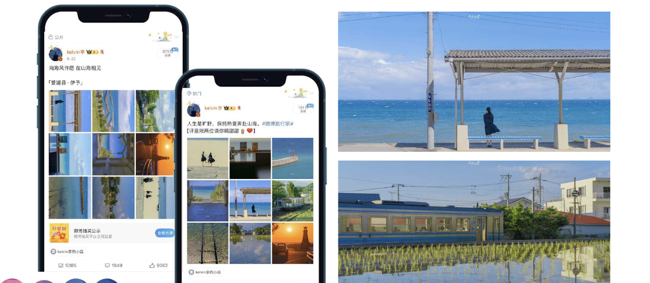 本事業では、中国主要SNS「Weibo(微博)」を活用し、在日中国人写真家でインフルエンサーのKelvin李氏(フォロワー約460万人)が現地取材を実施。彼の視点から伊予市の魅力を再発見するコンテンツを制作し、写真コミュニティ(約47万人)との連動投稿を行いました。観光名所だけでなく、地元ならではの風景や文化体験も広く紹介し、多様な観光ニーズへの訴求を強化しました。